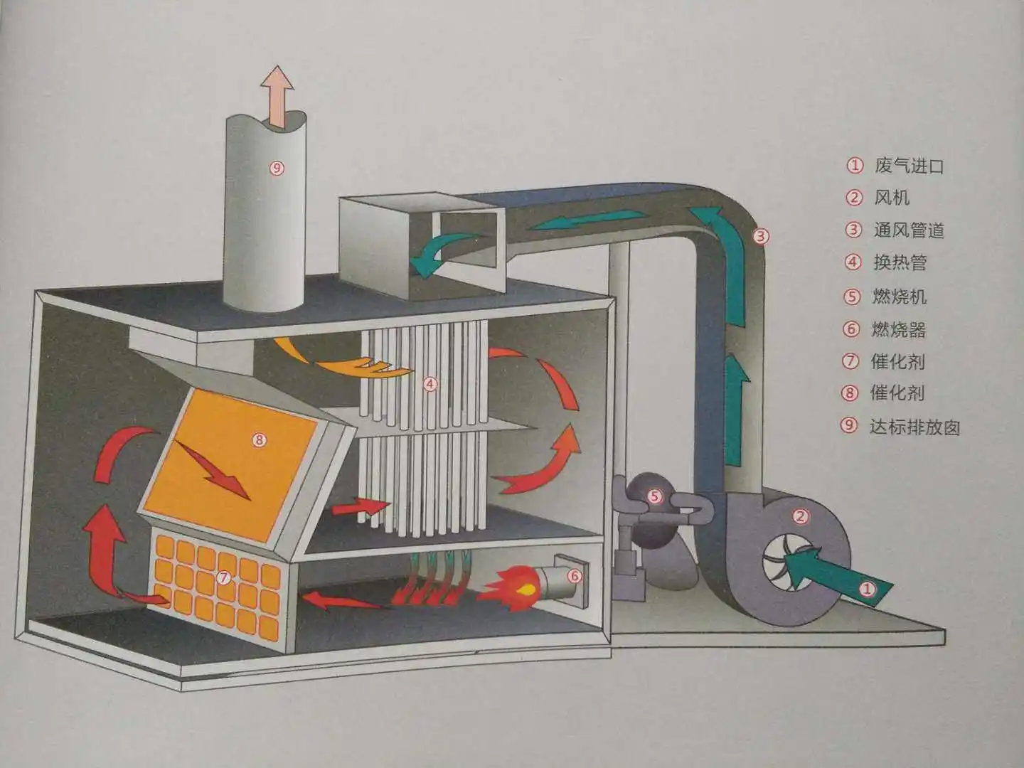 催化凈化是典型的氣固催化反應,其實質是活性氧的氧化。在催化凈化過程中,催化劑的作用是降低活化能。同時,催化劑表面具有吸附作用,使反應物分子在催化劑表面富集,提高了反應速率,加快了反應速度。在催化劑的作用下,廢氣可以在較低的著火溫度下進行無焰燃燒,并被氧化成CO2H2O。同時,大量的熱能被釋放出來,從而達到去除廢氣中污染物的方法。通過活性炭吸附,將風量大、濃度低的廢氣濃縮成風量小、濃度高的廢氣,在進入RCO裝置進行處理,可節(jié)約運行成本。