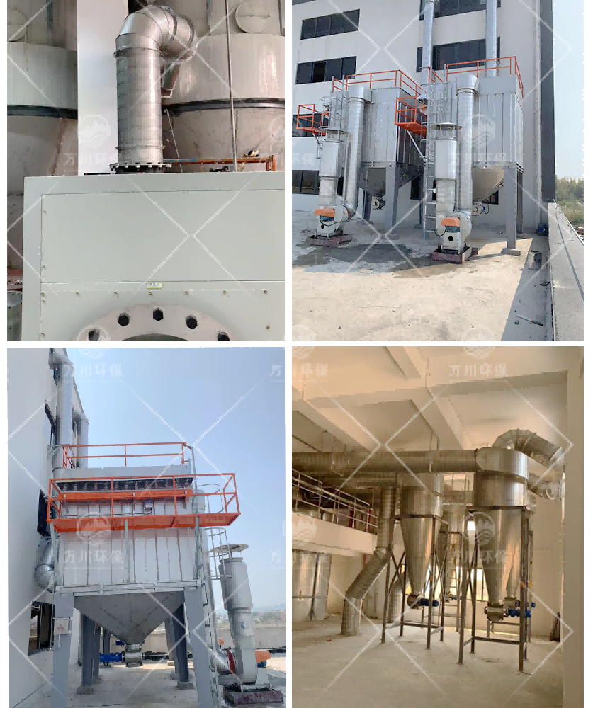本次根據(jù)設計的方案共采用了4套旋風除塵器+脈沖除塵器組合工藝系統(tǒng)