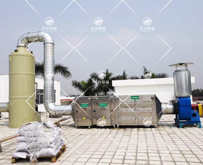 根據(jù)該公司的實(shí)際情況,白碳黑粉塵有易爆以及可回收再次利用的特點(diǎn),我們采用‘UV光解+活性炭吸附+噴淋塔’進(jìn)行處理。